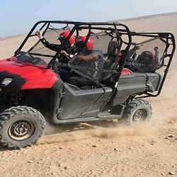 Ablauf vom Ausflug Super Safari Zwischen 11 und 12 Uhr holen wir Sie von Ihrem Hotel ab. Die genaue Uhrzeit erhalten Sie mit Ihrer Bestätigung, je nach Lage Ihres gebuchten Hotels. Gegen 12:30 Uhr erreichen wir die Safari Station und heißen Sie herzlich willkommen. Nach einer ausführlichen Sicherheitseinweisung mit dem Quad beginnt das Abenteuer Wüste – Super Safari! Ihr Guide führt Sie entlang von Schluchten, Tälern und Dünen. Lassen Sie sich den Wind um die Nase wehen und genießen Sie die 35 bis 45 minütige rasante Fahrt. Zurück an der Station wechseln wir das Fahrzeug. Los geht´s mit dem Spider Car. Erkunden Sie Ungefähr. 25 Minuten im offenen Spider Car das Fahrerlebnis mit dem Adrenalinkick. Viel Spaß! Das Abenteuer Wüste geht weiter! Wir wechseln das Fahrzeug erneut. Im Geländewagen geht es weiter. Genießen Sie die ca. 25 km lange Fahrt durch die Weite und lehnen Sie sich zurück. Die bequeme Art der Wüstensafari. Die Fahrt durch die unendliche Weite zum Wadi dauert ca. 40 Minuten. Das Farbspiel der Nachmittagssonne und die Wüste mit seinen Bewohnern wird Sie inspirieren zu entschleunigen. Die Beduinen erwarten Sie bereits und heißen Sie herzlich willkommen in ihrem Dorf mit Ihren Kamelen für einen Ritt. Das Abenteuer geht weiter: Ein Kamelritt kann sehr entspannend sein, denn die Tiere sind friedlich und Sie werden den Ritt in den Sonnenuntergang sehr genießen – ein sicher unvergesslicher Moment auf dem Gipfel einer Sanddüne den Sonnenuntergang zu erleben. Nach Sonnenuntergang genießen wir gemeinsam ein einfaches schmackhaftes orientalisches Abendessen nach Beduinenart. Bei einer Tasse arabischem Schwarztee erfahren Sie Interessantes über das Leben der Beduinen und ihrer Kultur. Und in entspannter Stimmung folgt sicher das eine oder andere Märchen aus 1001 Nacht. Anschließend gibt es noch eine abendliche Show im Beduinendorf, bevor wir uns auf den Rückweg in die Zivilisation machen. ------------------------------------------------------------------------------------------------------------------------------------ Der Preis: 30€ Online buchen und vor Ort bezahlen Abholung von der Lobby Ihres Hotels Deutschsprechender Reiseleiter Kundenservice erreichbar 24/7 Inklusive Versicherung KEINE Kaffeefahrt Kinderermäßigung: 0-5 Jahre: Frei 6-11 Jahre: 50% Ermäßigung Ab 12 Jahre: Voller Preis